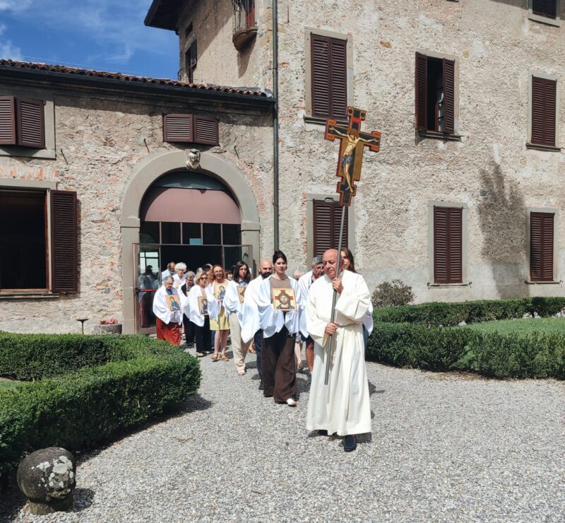 Dal 18 al 27 luglio Villa Ambiveri ha ospitato i corsi annuali della scuola iconografica di Seriate. Circa una quarantina di corsisti, suddivisi in gruppi in base al livello, ha lavorato sotto la guida dei maestri della scuola. Pubblichiamo l’omelia di padre Angelo durante la celebrazione in cui sono state benedette le loro icone.