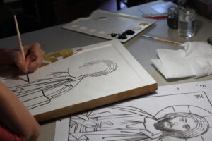 I corsisti del primo anno si sono cimentati in esercitazioni grafiche, di composizione, sul calco, sull’uso dei materiali (tavola e colori), al fine di acquisire le abilità tecniche di base del linguaggio pittorico e simbolico dell’icona. Gli allievi del corso avanzato si sono invece dedicati al completamento dell’icona del Pantocratore o della Madre di Dio della Tenerezza iniziate nelle precedenti sessioni di lavoro.