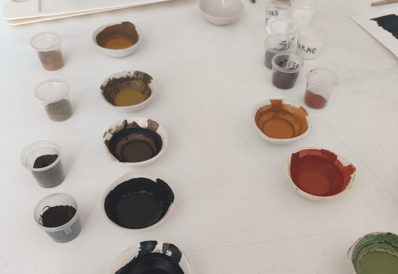 Inoltre, ci siamo soffermati a lungo sullo studio delle diverse proprietà dei pigmenti e abbiamo prestato particolare attenzione a quei pigmenti che non risultano molto vivaci e che di norma non attirano molta attenzione. Abbiamo scoperto quali opportunità di lavoro offrono, come arricchiscono la tavolozza e come fanno vibrare in modo nuovo i colori più brillanti.