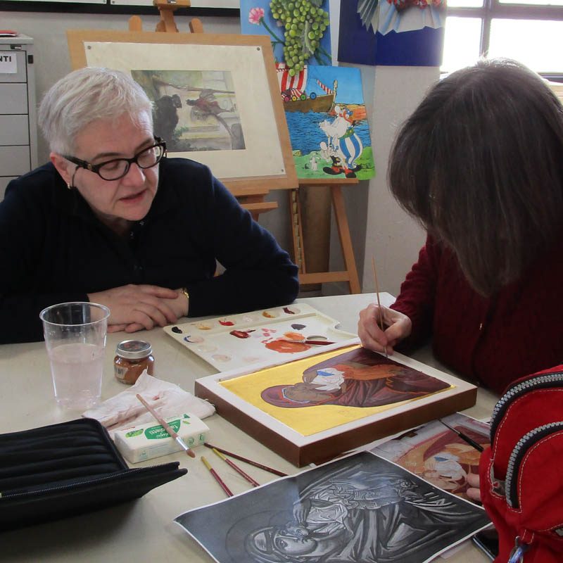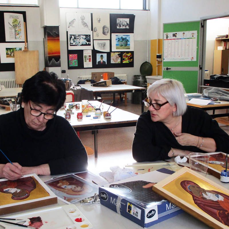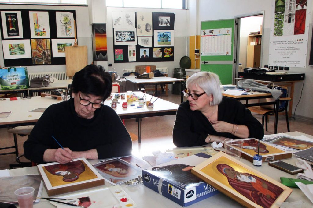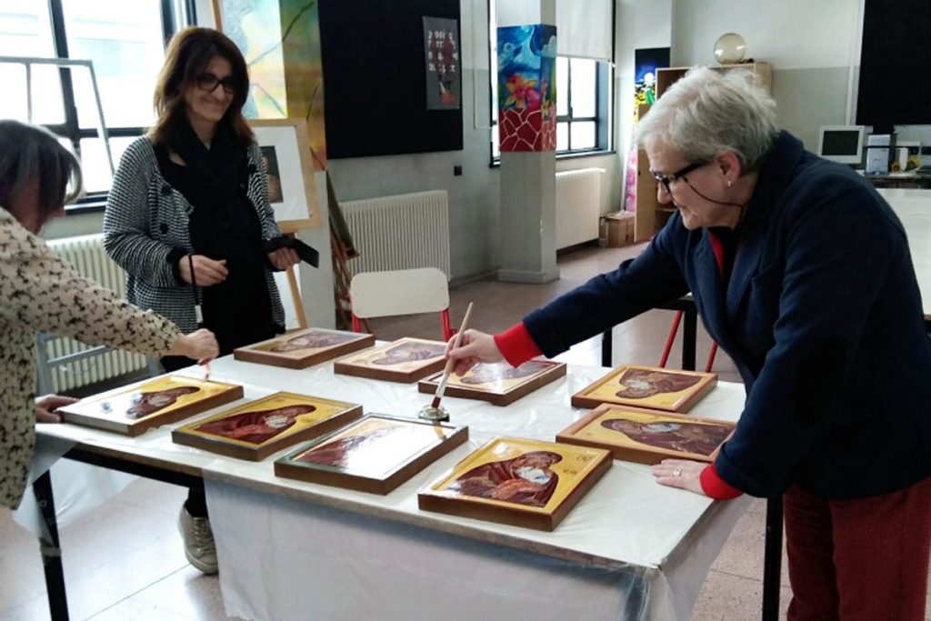«Da tempo alcuni insegnanti di pittura avevano manifestato il desiderio di frequentare un corso di aggiornamento che fosse interessante e soprattutto legato a nuove esperienze artistiche. Con molto entusiasmo abbiamo pensato di affrontare il mistero dell’Iconografia nei suoi vari aspetti. Ci siamo rivolti, così, ad Elena, grande amica, compagna di Accademia di una collega partecipante al corso e, soprattutto, esperta iconografa e referente della Scuola iconografica di Seriate, esponendo il nostro desiderio e progetto. La risposta è stata immediata. Ormai da due anni al Liceo Artistico “Fausto Melotti” di Cantù si tengono corsi di aggiornamento per docenti, frequentati con impegno e costanza. È con orgoglio che alla fine di ogni corso si mettono in mostra le icone che i docenti partecipanti hanno realizzato solo grazie alla professionalità, passione, disponibilità e, soprattutto, pazienza di Francesca.