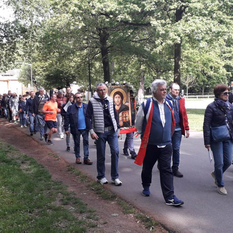 Questo gesto ha espresso una fede, una unità, una grande amicizia palpabile, incontrabile per chi ci incrociava (molte persone al passaggio delle icone facevano il segno della croce). Una fatica condivisa nel preparare il tutto, ma anche una bellezza che si palesava nelle icone trasportate che ci precedevano all’ombra della Croce. Un segno di speranza per chi ci incontrava tra una bancarella e un’altra, tra una corsa e un’altra, sorpresi da questa compagnia guidata al Destino.