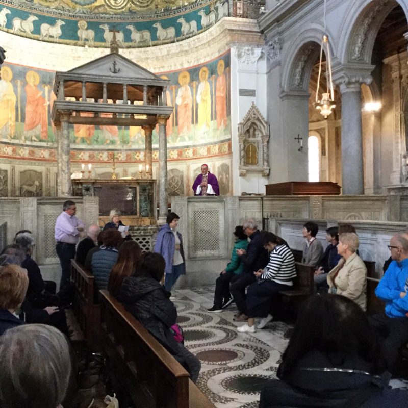 Il 23-24 marzo, con la Scuola iconografica di Seriate e gli amici del Centro culturale L’umana avventura, abbiamo passeggiato in 54 per Roma, sotto un cielo smaltato di primavera, alla scoperta di uno degli snodi fondamentali della nostra storia, il passaggio dal mondo antico alla civiltà cristiana: complessi architettonici e pittorici che stanno a cavallo tra il mondo antico e gli albori della cristianità, testimonianze di come l’arte cristiana attinga all’eredità del mondo antico adottandone moltissimi elementi per trasfigurarli attraverso il nuovo simbolismo generato dalla «rivoluzione cristiana». Un processo di trasfigurazione che continua nei secoli, e a cui ogni epoca non rinuncia ad apportare un proprio contributo.