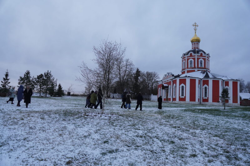 Lunedì 15 dicembre, dopo la chiusura della mostra su san Benedetto e san Sergio di Radonež, abbiamo deciso di andare tutti insieme – i collaboratori del Centro Biblioteca dello Spirito con l’arcivescovo mons. Paolo Pezzi e don Giampiero Caruso, cappellano della comunità italiana a Mosca – a consegnare la grande icona di San Benedetto che campeggiava nella mostra, a padre Sergij (Filippov), superiore del monastero di San Giovanni Battista a Sumarochovo (una filiazione del monastero Novospasskij a Mosca), a circa 150 km a ovest della capitale.